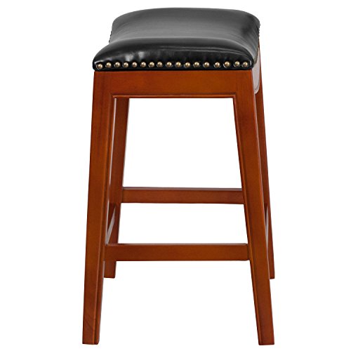 -. Title : Flash Furniture 26'' High Backless Light Cherry Wood Counter Height Stool with black Leather Seat