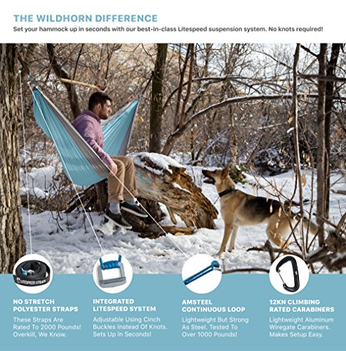 - HANG YOUR HAMMOCK IN SECONDS - Our best-in-class LiteSpeed suspension system is fast, strong and infinitely adjustable. Using cinch buckles made from cold rolled steel you can adjust your hammock to the perfect hanging angle. Spend less time setting up and more time hanging out. Our straps are made from reinforced 100% stretch-free, tree-friendly polyester.