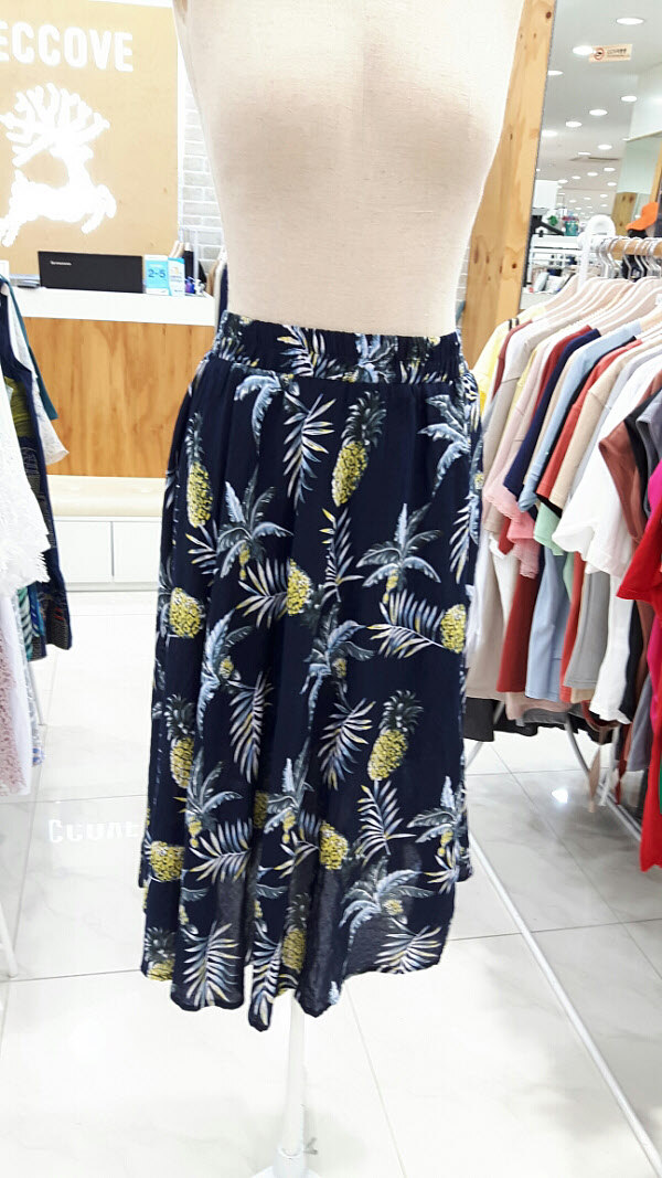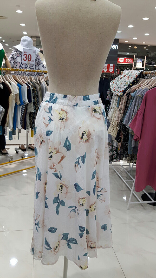 허리밴드의 편안한 스커트입니다목련꽃패턴이 인상적이며 시원한 소재의 스커트입니다