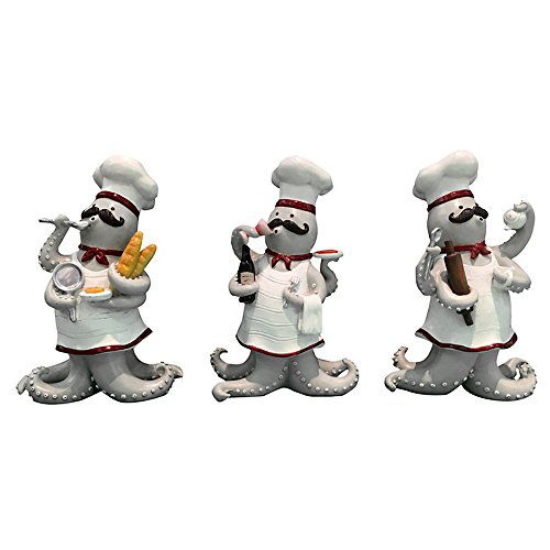 Turtle King Set of 3 Octopus Chefs Kitchen, White, 3 Piece