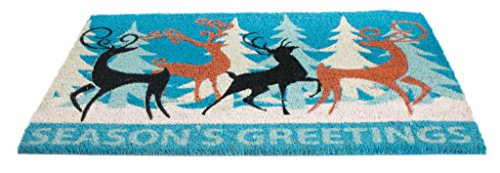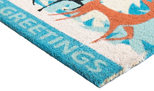 Welcome in the holidays and your guests with Imports Decor's new "Deer Season's Greetings" design. The seasonal doormat design is part of Imports Decor's coir doormat line with a vinyl backing to help keep your doormat in place. Vinyl backed coir doormats are printed with water based colors, which provide color fastness and brightness. Imports Decor constructs their doormats with the best quality coir naturally bleached with sea water. Coir fiber is relatively waterproof, has superior scrubbing power and is resistant to the elements. Vinyl backing makes them skid-free and durable. With a vinyl-backed coir doormat from Imports Decor, you can feel confident dirt and debris will be left at the front door and not in your home. Item No.532PVC.Feature