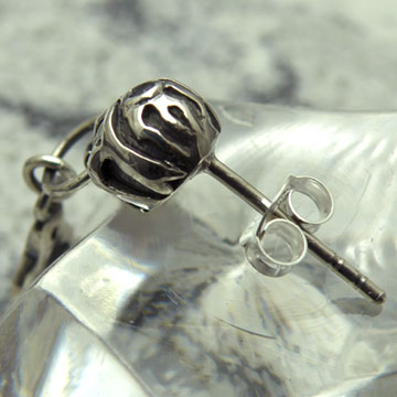 ブラックジルコニアの入ったスカルに手錠がぶら下がっている、デザインの揺れピアスです。あまり他では見ないデザインです☆スカル好きの方ならぜひコレクションにしたいひとつです!!