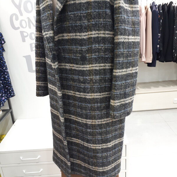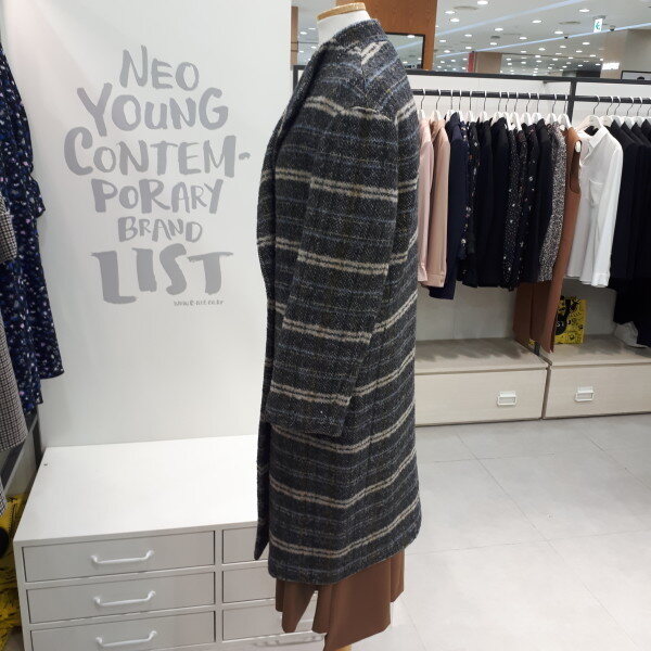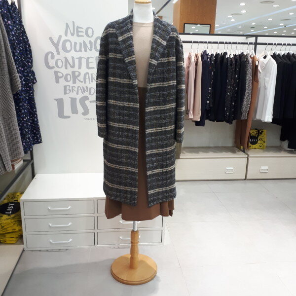 헤링본 소재에 체크 패턴이 믹스되어 유니크한 스타일로 미니멀한 실루엣의 울 코트입니다