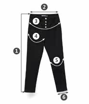 | 尺码 | ①裤长 | ②腰围 | ③臀围 | ④大腿围 | ⑤膝围 | ⑥脚围 | ⑦前裆 | ⑧后裆 | ||