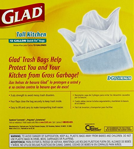 -. Title : Glad Quick-Tie Tall Kitchen Trash Bags, White - 13 gal - 80 ct - 2 pk