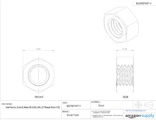 Steel Hex Nut, Zinc Plated Finish, Class 8, JIS B1181, M8-1.25 Thread Size, 12 mm Width Across Flats, 6.5 mm Thick (Pack of 50)
