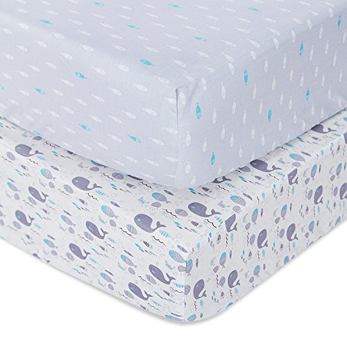 (TILLYOU)/Nursery/Bedding/DIRECT FROM USA/TILLYOU Printed Crib Sheets Set for Baby Bed, 2 Pack - 100% Woven Cotton Fitted Crib Mattress S...