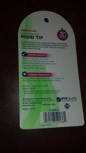Product Description * It is recommended to keep a thermometer handy in case a family member becomes sick. Our Rigid Tip Thermometer is the perfect household thermometer. It gives you an safe accurate temperature readings every time in just 30 seconds. 0