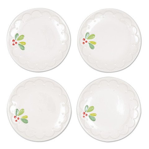 Ceramic Mistletoe Sprig Dessert Plates - Set of 4
