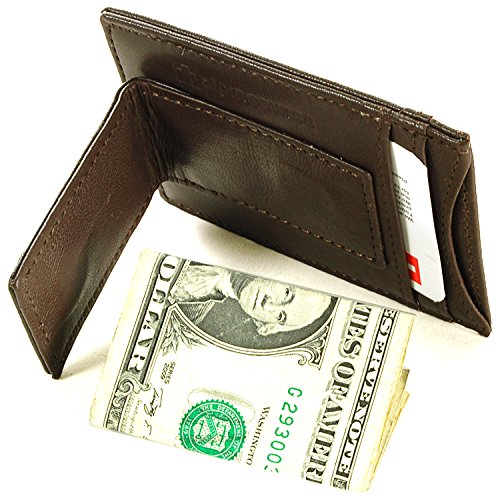 Mens Leather Money Clip Front Pocket Wallet Magnet Clip Card ID Case Dark Brown