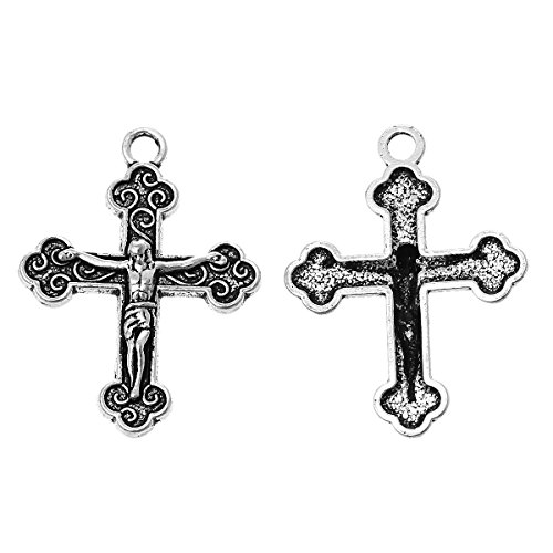 Cross Crucifix Charm Pendants, 100 Pack (50 of Each)