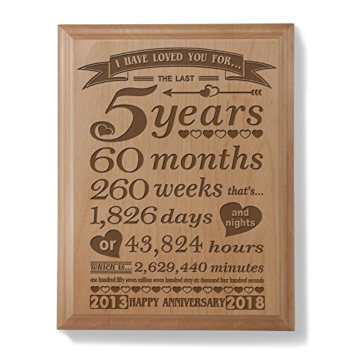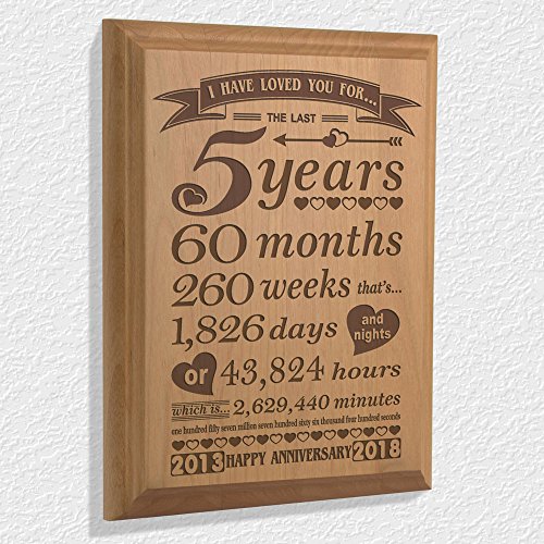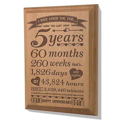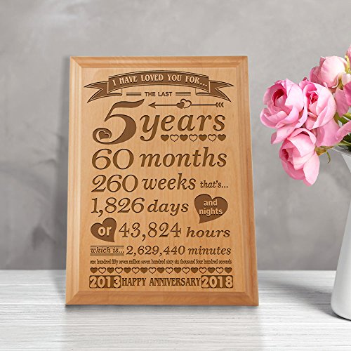 5th Anniversary Solid Wood Plaque (5 Years & 60 Months) - Includes 2013 (Marriage Year) and 2018 (5th Anniversary Year)