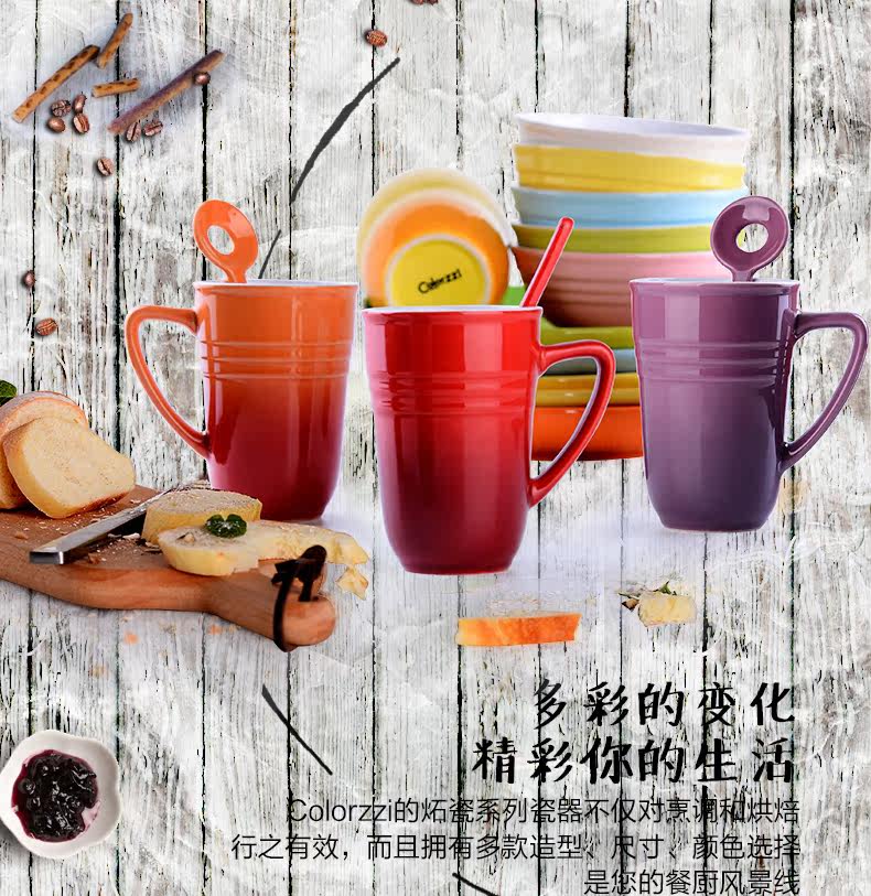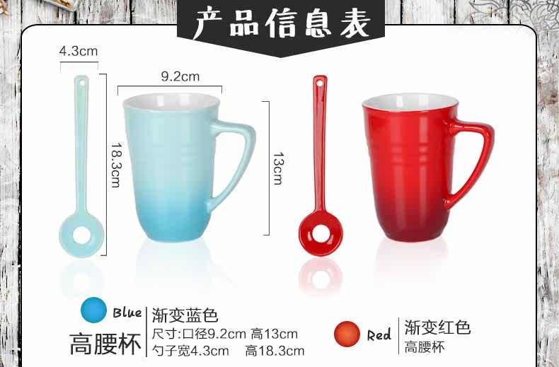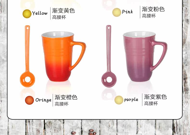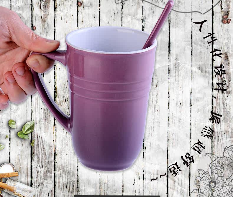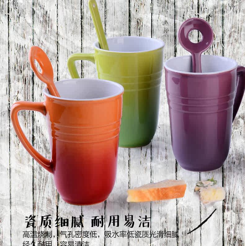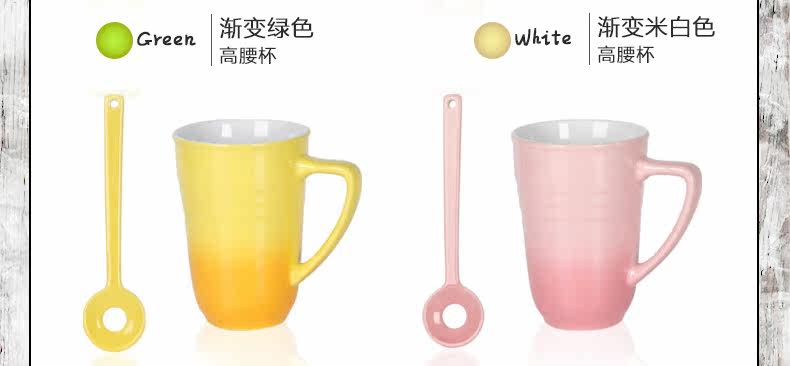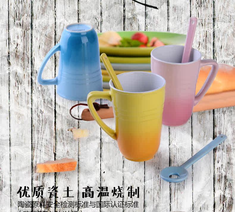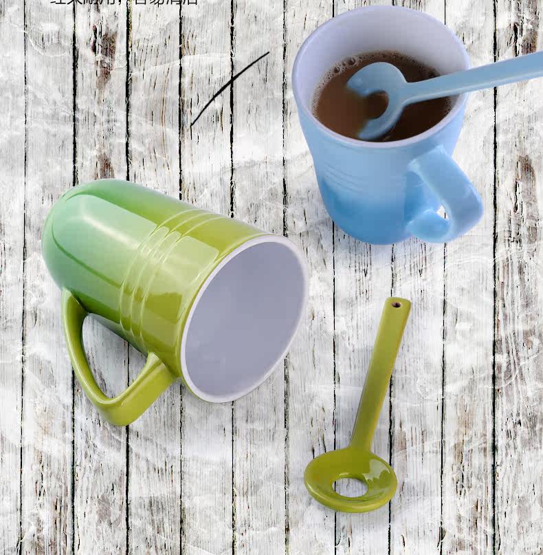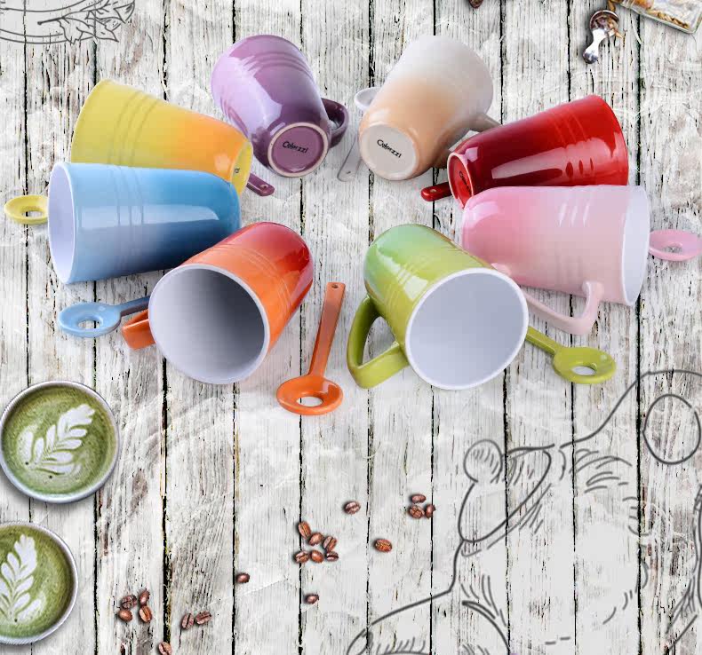 马克杯子套装茶水杯牛奶随手杯陶瓷杯带勺子大容量创意简约