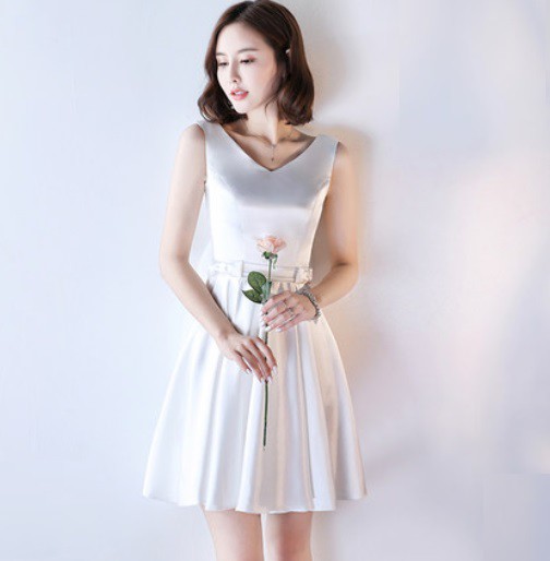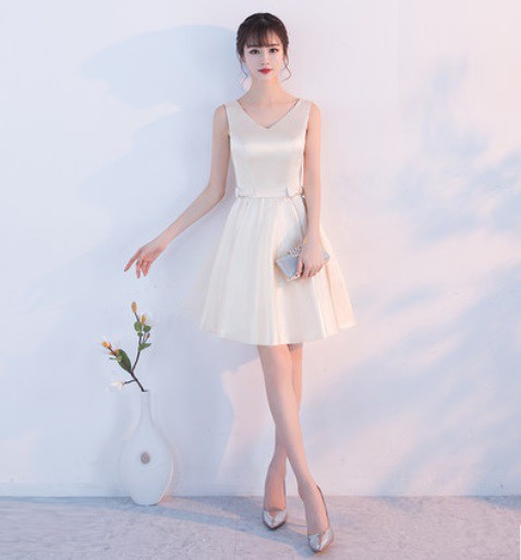 シンプルながらも、スカート部分にシースルーあしらった上品なドレス。