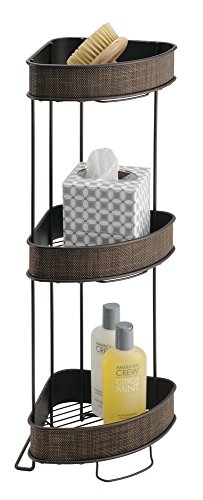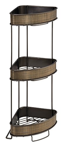 mDesign Free Standing Bathroom Storage Corner Shelves for Towels, Soap, Candles, Tissues, Lotion, Accessories - 3 Tiers, Bronze