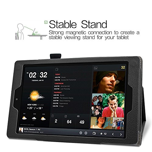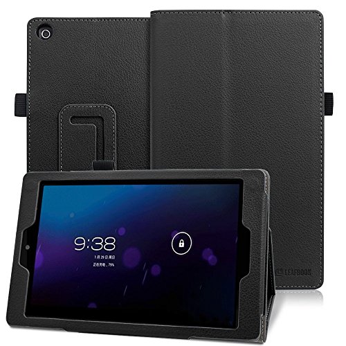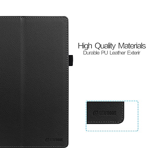 Folio Case for All-New Amazon Fire HD 8 (6th Generation, 2016 release), Leafbook Slim Fit Premium Vegan Leather Standing Cover with Auto Wake / Sleep for Fire HD 8 Tablet (2016 6th Gen Only), Black