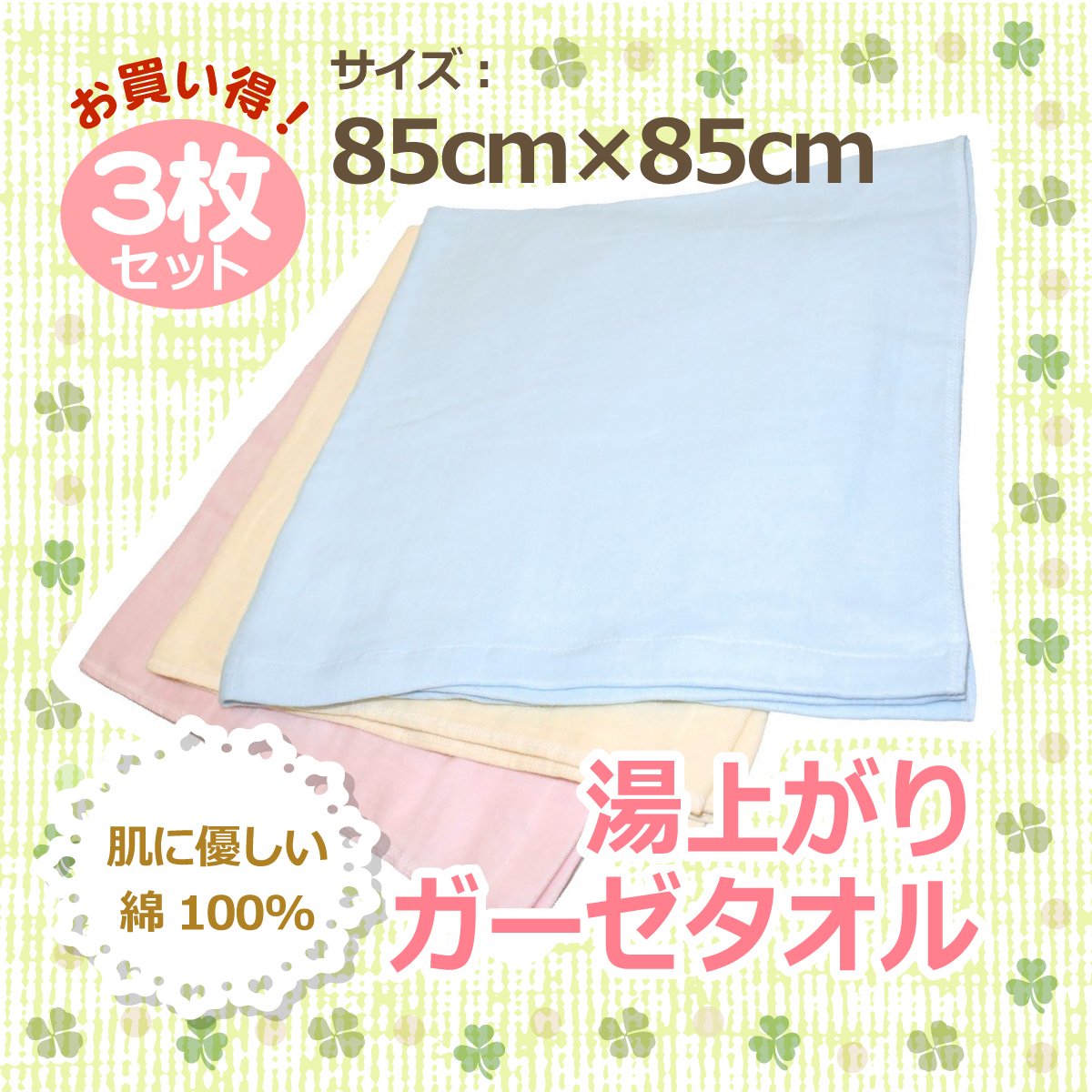 100% cotton after bath gauze towel 3-color 3-Disc (blue pink yellow) 85 × 85cm