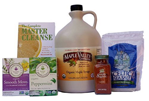-. Binding : Health and Beauty -. Brand : Maple Valley -. Department : Health and Beauty -. EAN : 0765299061063 -. Feature : 1 gallon Maple Valley Cooperative Grade B Organic Maple Syrup in Bpa free packaging / 8oz Organic compliant Sea Salt- Selina Naturally and 2.89oz Cayenne - Simply Organic / 1 box Organic "Smooth Move" Tea and 1 box Organic Peppermint Tea - Traditional Medicinals (each box contains 16 tea bags) / Book "The Complete Master Cleanse" by Tom Woloshyn / Kit does not contain lemons. You will have to buy your own lemons. Free Shipping! -. IsAdultProduct : 0 -. Label : Maple Valley / Organic Maple Cooperative -. Manufacturer : Maple Valley / Organic Maple Cooperative -. MPN : MCKIT-GAL-1 -. PackageQuantity : 1 -. PartNumber : MCKIT-GAL-1 -. ProductGroup : Health and Beauty -. ProductTypeName : HEALTH_PERSONAL_CARE -. Publisher : Maple Valley / Organic Maple Cooperative -. Studio : Maple Valley / Organic Maple Cooperative -. Title : Maple Valley 16 Day Organic Master Cleanse Lemonade Detox/ Kit with Book The Complete Master Cleanse -. UPC : 765299061063
