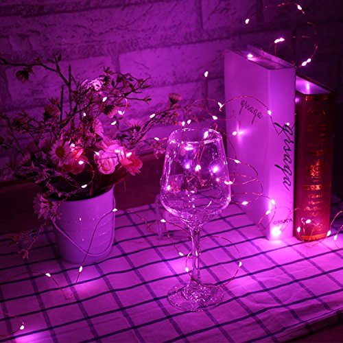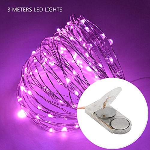 Hogoo Decor LED Lights,3M/10ft, Copper Wired, 30 LED Bulbs Indoor Outdoor Decorations, Button Battery Powered Batteries Included Pack of 6 (Purple)