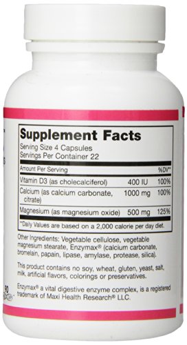 -. Feature : 180 capsules / Provides you with calcium and magnesium and vitamin d in a one capsule / Support for healthy bones and muscles / Balanced nutritionally to avoid calcium buildup in the arteries as a result of supplementation / Gluten free and kosher certified