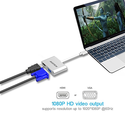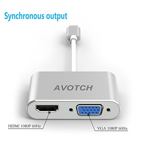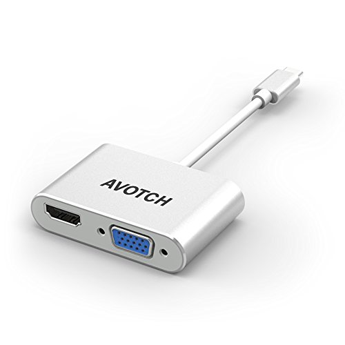 USB Type C to HDMI VGA Adapter,AVOTCH 2 in 1 USB3.1 Type-C Converter Dual screen display with Aluminium Case