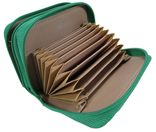 Buxton Womens Leather Mini Accordion Wizard Wallet, Credit Card Case, Coin Purse, Id Holder, (Bright Green)