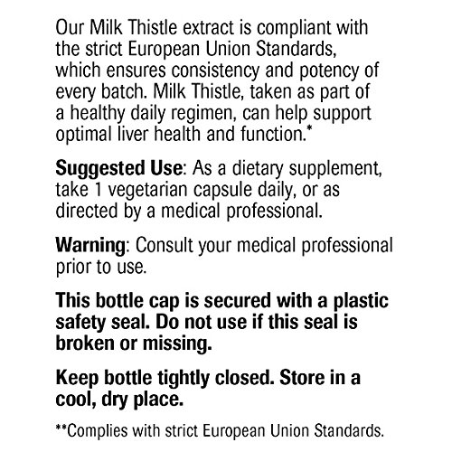 Studio : Natural Wellness Publisher : Natural Wellness Binding : Health and Beauty Product Description Protect your liver naturally with milk thistle standardized to 80% silymarin - the highest percentage available on the market. Silymarin is the beneficial component of the milk thistle plant and responsible for its therapeutic qualities.The more silymarin, the more benefit and protection you receive. With Milk Thistle 500 MG standardized to 80% silymarin, you'll get 400 mg of PURE silymarin in every serving to support your liver's health. Don't be fooled by manufacturers trying to mislead you by stating extract ratios and touting their large serving sizes without mentioning the silymarin content. Extract ratios are irrelevant for milk thistle and large serving sizes mean nothing unless you know how much silymarin is in the actual product. If you're looking for good milk thistle product with high levels of silymarin, Milk Thistle 500 MG is a great choice. Milk Thistle 500 MG complies with the STRICT European Union Standards of purity and potency and is manufactured in the United States to meet the FDA's cGMP standards. 0