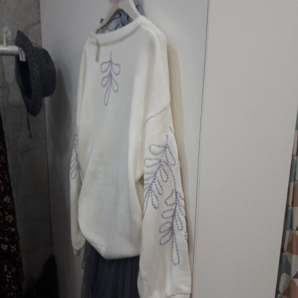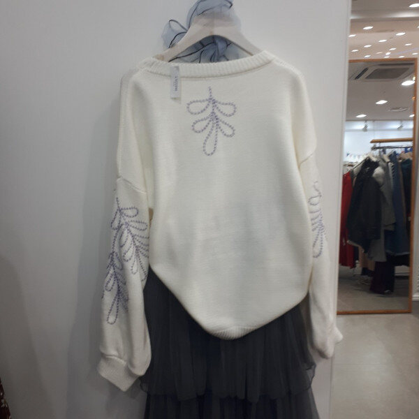 베이직한 디자인에 자수 포인트가 있는 니트입니다 길이감과 두께감이 적당해 코트안에 입어주시면 예쁘게 코디하실 수 있습니다.