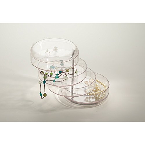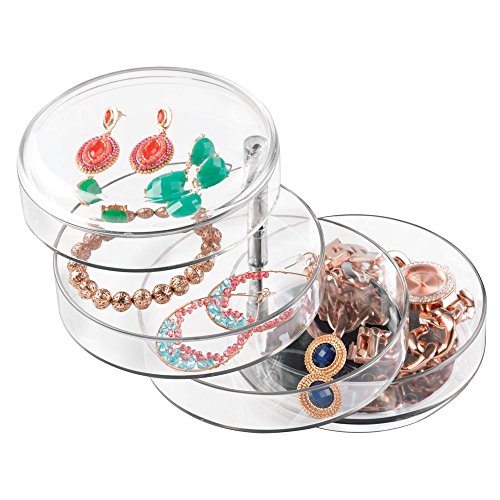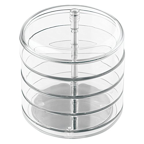 InterDesign Fashion Jewelry Organizer with Four Swivel Trays for Rings, Earrings, Bracelets, Necklaces - Clear
