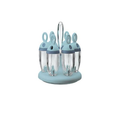 Studio : Guzzini Publisher : Guzzini Product Description This rotating spice rack, designed by Italian design studio Angeletti Ruzza, comes with six bottles for your spices. Your favorite ones are just a spin away! Designed for the Italian houseware company Guzzini. Available in blue.