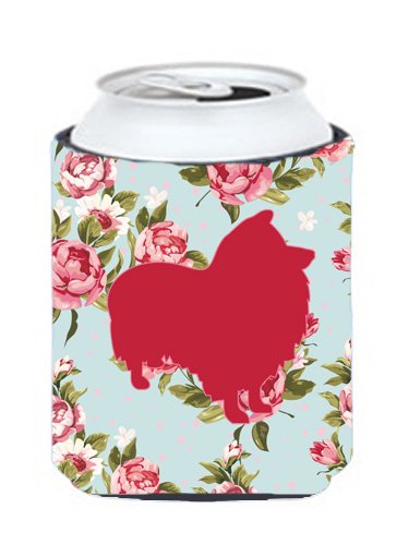Sheltie Shabby Chic Blue Roses Can or Bottle Beverage Insulator Hugger BB1080
