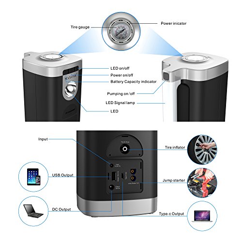 MAXOAK First Aid Kit Smart Tire Inflator Pump Car Jump Starter Power Bank and Emergency Lighting Tool On the Go for Emergency for Indoor Outdoor Travel Camping and Survival -22000mAh 800A