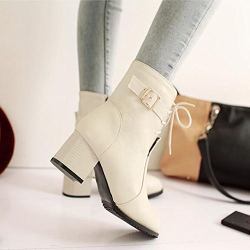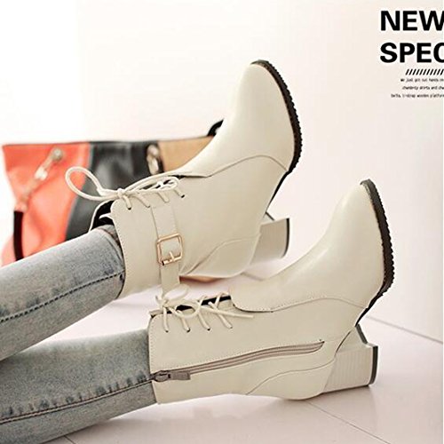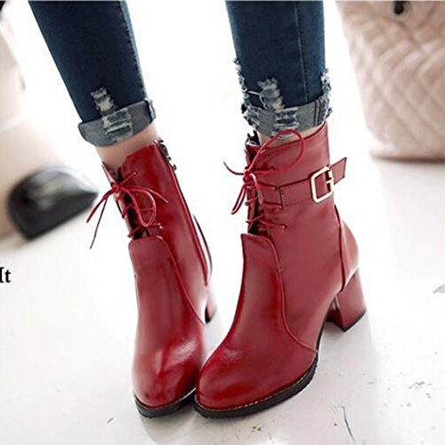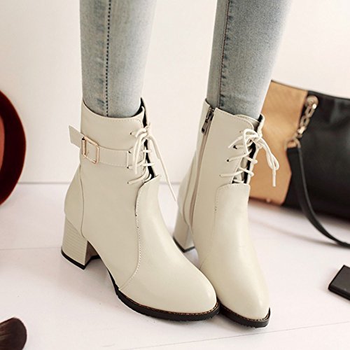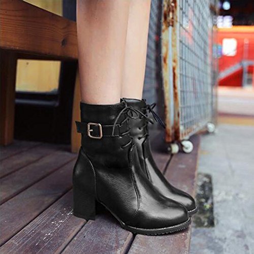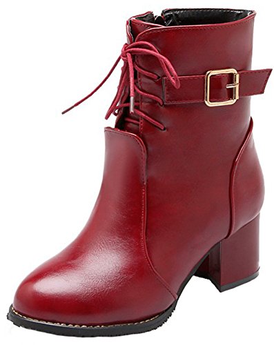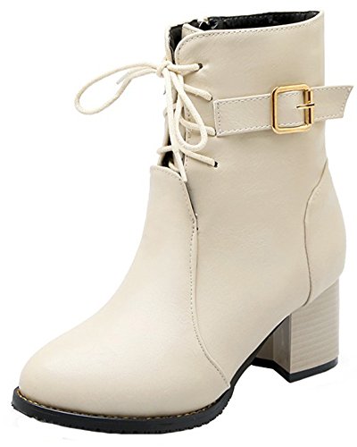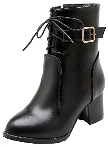 (Mofri)/Women's/Boots/DIRECT FROM USA/Mofri Women's Fashion Buckle Belt Lace up Ankle Boots Round Toe Medium Chunky Heel Short Boots ...