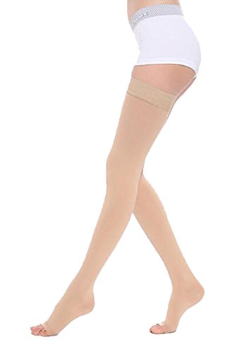 Thigh High Compression Stockings, Opaque, Firm Support 20-30 mmHg Gradient Compression with Silicone Band, TOFLY Open Toe Compression Stockings, Treatment Swelling, Varicose Veins, Edema