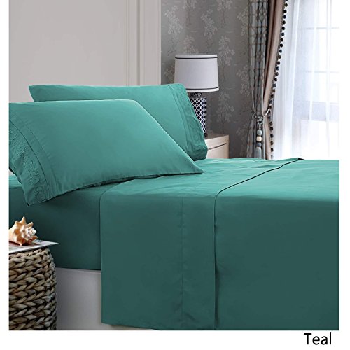 Royal Home Decor Embroidered Microfiber Deep Pocket Sheet Set (Cal King, Teal)