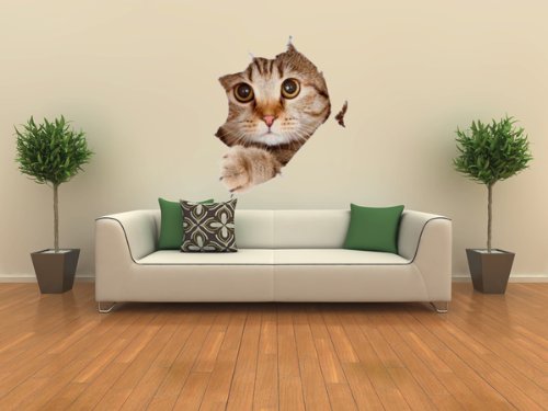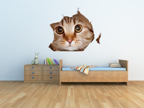 - Title : Animal Wall Decals Cat Looking up in Paper Side Torn Hole Isolated - 48 inches x 44 inches - Peel and Stick Removable Graphic