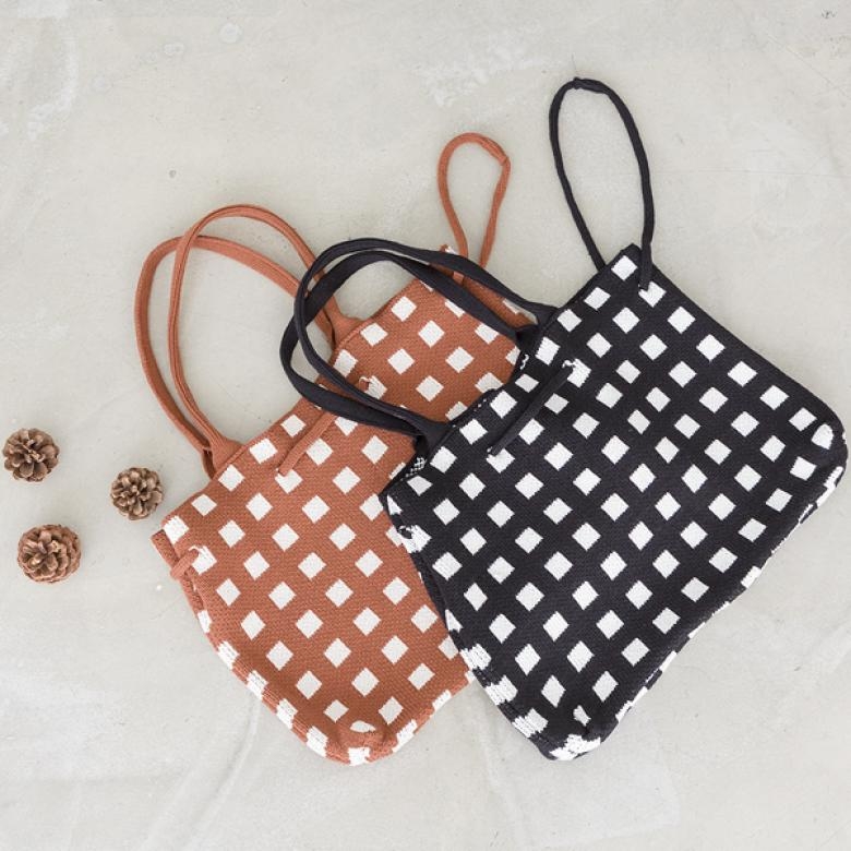 조리개 니트 가방 #84900MD COMMENT스퀘어 패턴의 심플한 니트 가방 소개할게요데일리하게 가볍게 즐기기 좋은 아이템으로가을겨울시즌에 코디하기 좋은 가방입니다:)캐주얼한 옷차림에 잘 어울려 편안하게 코디하기 좋아요:)니트 특유의 신축성으로 보다 안정감있게 수납할 수 있고넉넉한 공간으로 다양한 수납이 가능합니다-♡코디에 특별함을 더하는 가방 초이스하세요~COLORSIZE TIP컬러는 브라운블랙 2color로 구성되어 있습니다.
