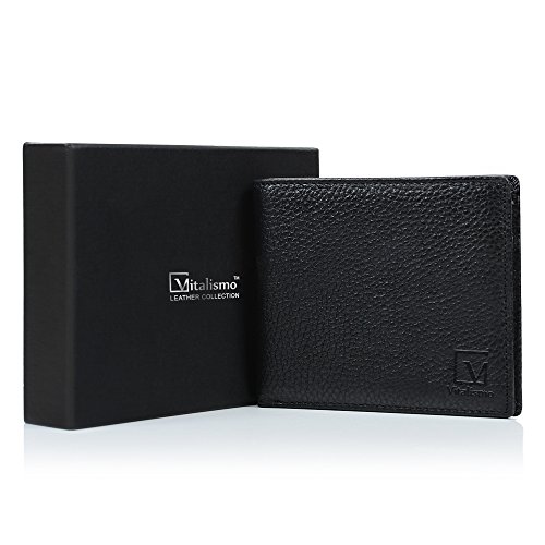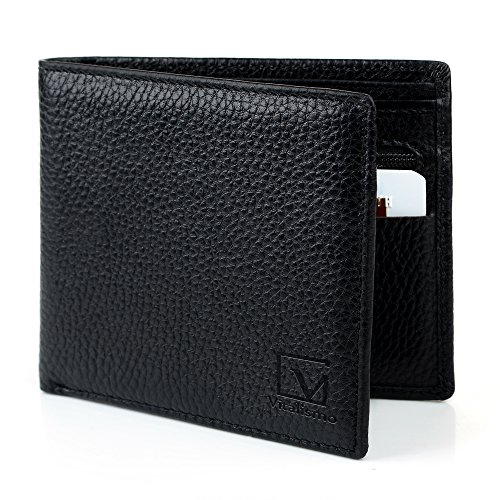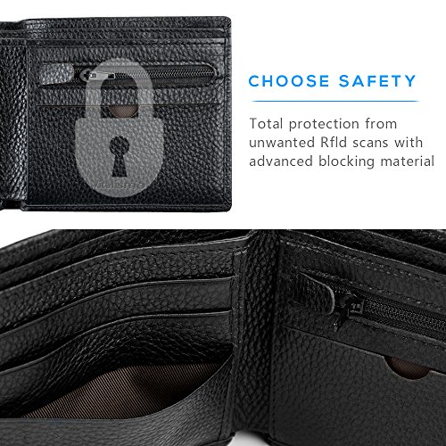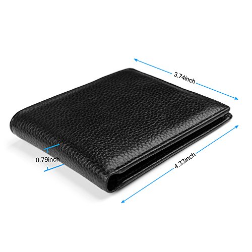-. Feature : GOOD MATERIAL: Using durable pebbled leather, tested and Approved by standard Lab Test. / CLASSIC DESIGN : This is the classic traditional bifold style wallet, including card slots, one bill pocket, full size Bill section, and ID window, to meet your daily needs. / SAFETY SECURITY: Equipped with advanced RFID SECURE Technology, protect your personal account information cannot be Obtained by pickpocketing thieves. / CONVENIENT to DAILY LIFE: You can keep your important cards all the time, access money easily, show your ID at the ready. The wallet slim profile fits nicely in your front or back pocket, you can get what you want at hand. / HIGH DURABILITY: This genuine leather wallet doesn't bulk up and easily slips in and out of your pocket or purse. If you don't torment it,you can use it for a long time.