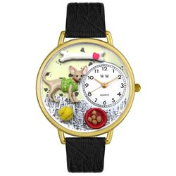 -. Title : Whimsical Watches Unisex G0130023 Chihuahua Black Skin Leather Watch