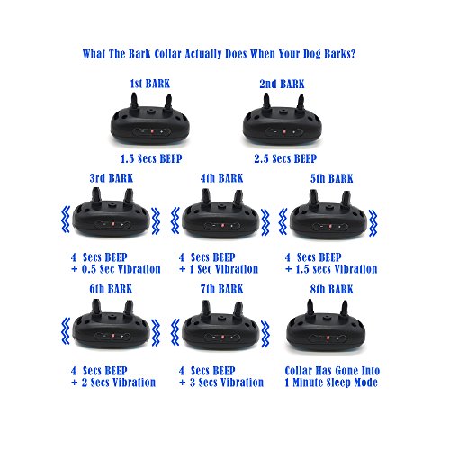 - Automatically icreases tone and vibration if barking persists.