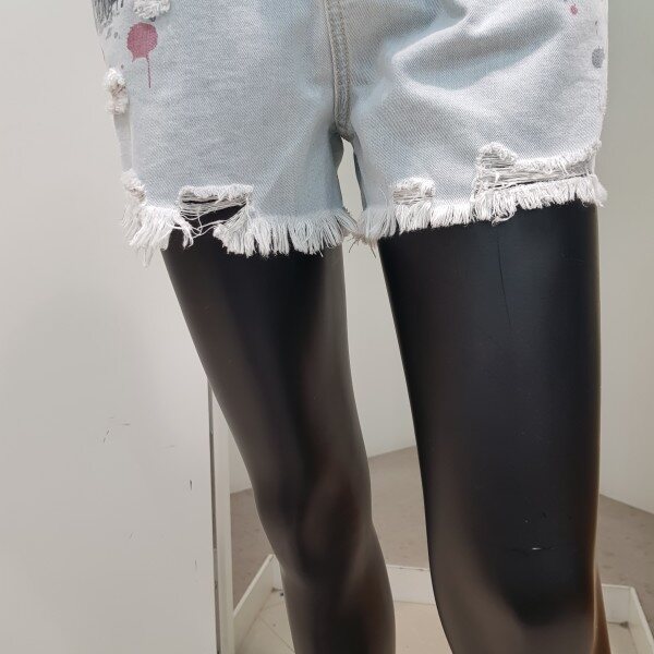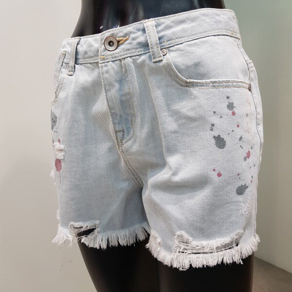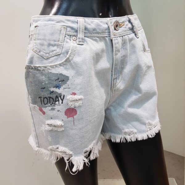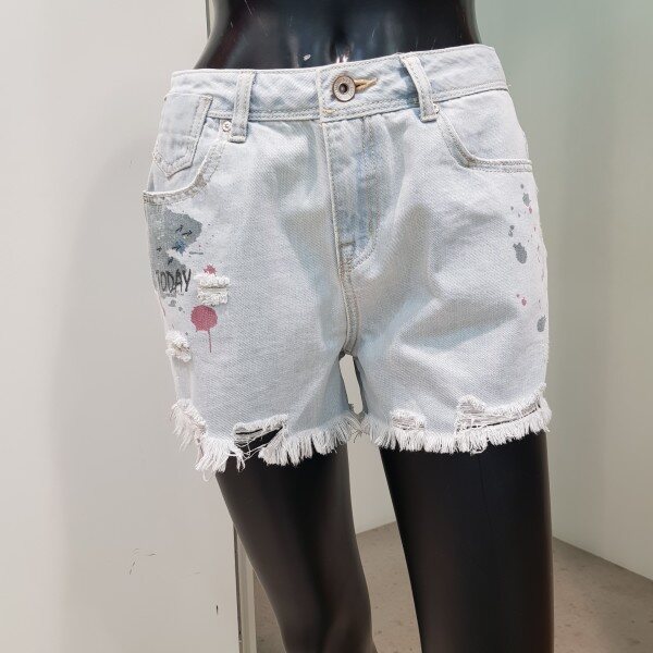18 S/S 여름 신상.여자 아이스톤 그래피티 3부 루즈핏 데님 핫팬츠 입니다. 밝은 아이스 인디고 컬러에 섬세한 스톤워싱과 오픈구제를 가미한 디자인 입니다. 키치한 감성의 프린트 디테일로 워싱톤과 은은하게 어울리는 디자인 입니다.