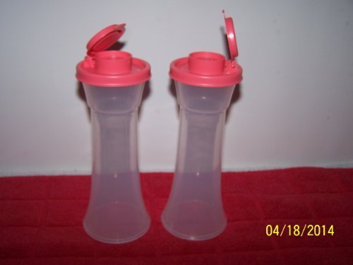 Tupperware Large Hourglass Salt & Pepper Shakers Clear With Watermelon Pink Tops