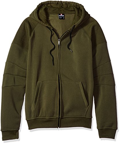 Southpole Men's Hooded Full Zip Fleece with Moto Biker Details on Shoulders