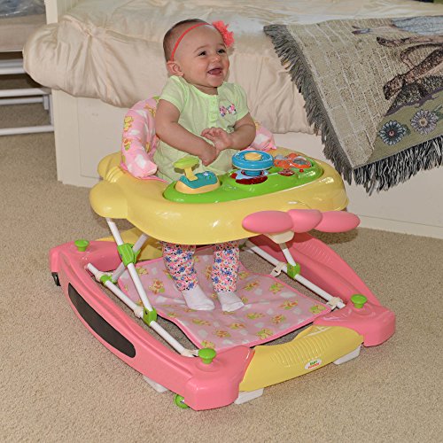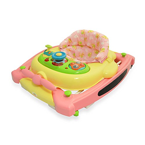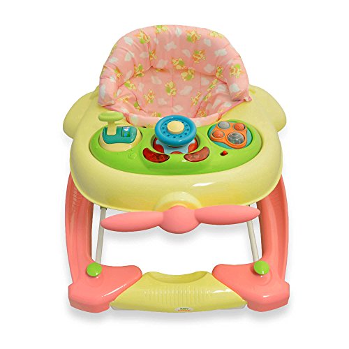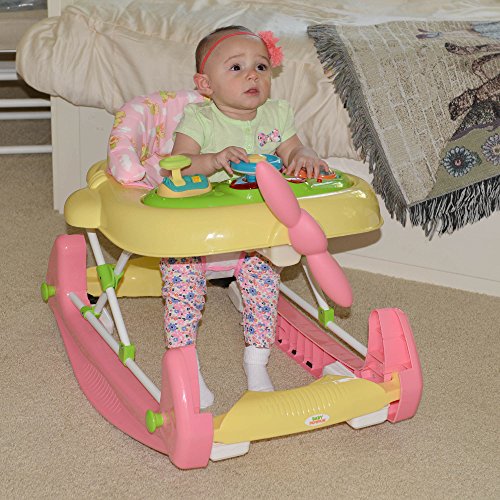- Feature : 2-in-1 Functionality Convenient design lets your baby either rock softly or wheel around the house on their own! / Airplane Themed Your baby can fly high with toys and noises modeled after planes / Electronic Toy Tray Keep your infant amused with interactive lights, sounds, and wheels / Adjustable Design Remove the seat for easy washing, take out the toy tray at snack time, or even fold up the whole thing for easy storage / ASTM Certified Independently tested to fulfill product and safety standards