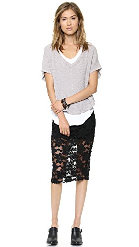 Delicate lace pencil skirt with sheer detailing for a sultry look.