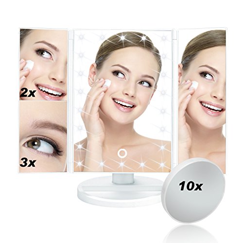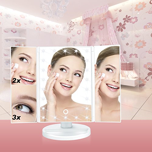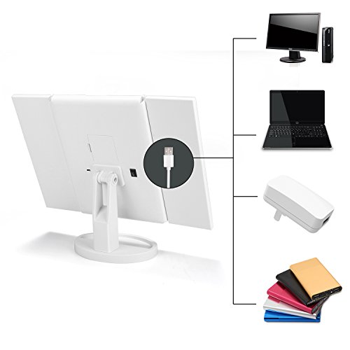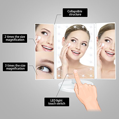 ELOKI Vanity Makeup Mirror Trifold 22 Led Lighted with Touch Screen, 1x/2x/3x Magnification and Usb Charging, 180° Adjustable Stand for Countertop Cosmetic Shaver Mirror