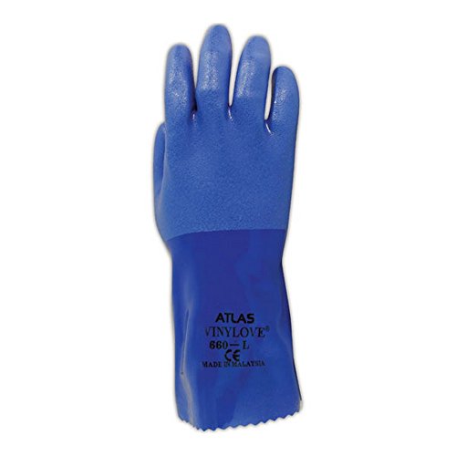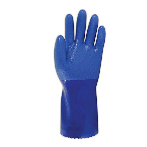 Showa Best 660-M SHOWA Best P660 Vinyl Ove Premium Vinyl Coated Liquid Proof Gloves, 9, Blue , Medium (Pack of 12)