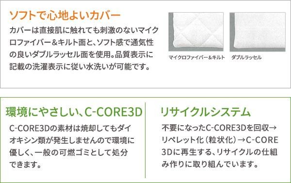| 反発力に優れたC-CORE3Dを中材に使用したマットレス。 |