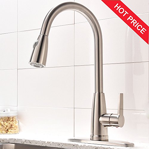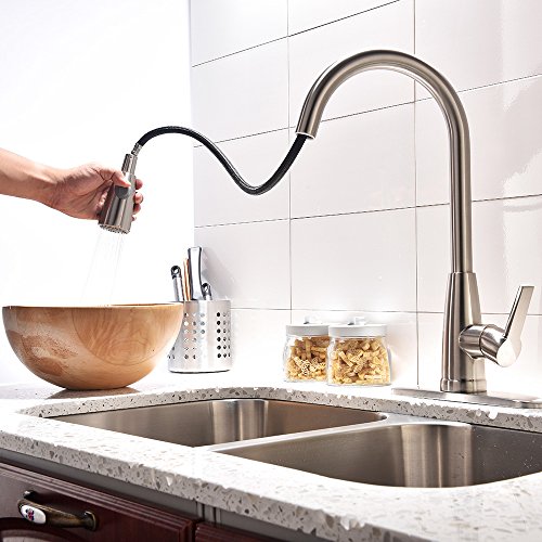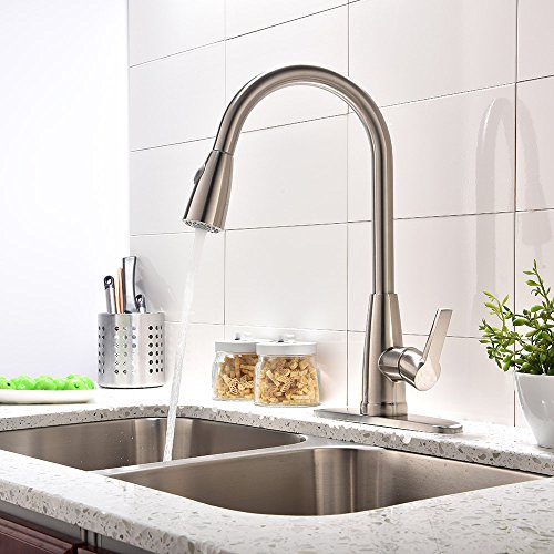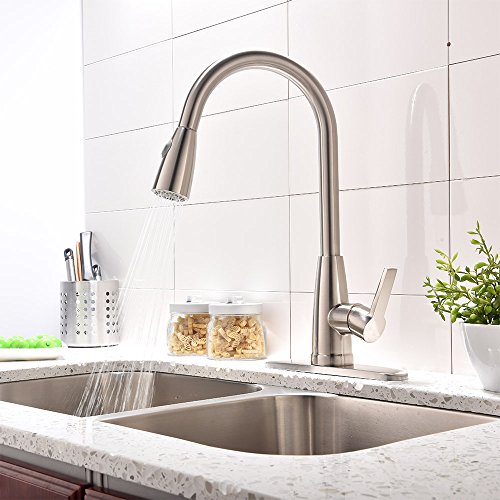 Friho Modern Commercial Lead-Free Stainless Steel Single Lever Handle High Arc Pull Down Sprayer Kitchen Sink Faucet,Brushed Nickel Pull Out Kitchen Faucets With Deck Plate