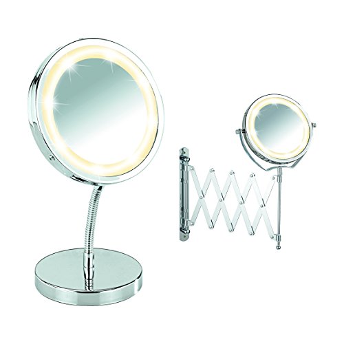 WENKO 3656360100 LED standing cosmetic mirror Brolo - illuminated, swivel function, mirror surface diam. 4.3 inch, Steel, 5.9 x 6.5 x 5.1 inch, Chrome